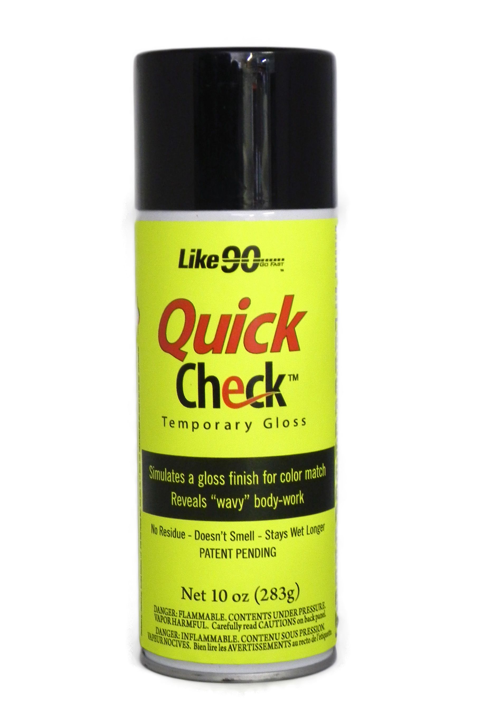Unlike clear coat, Quick Check can be sprayed anywhere that is convenient or wherever the lighting is best for color matching. Unlike wax and grease remover, it sprays on evenly, providing a better clear coat simulation, and dwells long enough to allow plenty of time to judge color, even in hot dry weather.