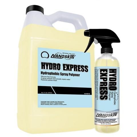 NANOSKIN HYDRO EXPRESS est techniquement un scellant polymère pulvérisé. Grâce à l'utilisation d'une formule polymère hydrophobe avancée, NANOSKIN a créé un polymère en aérosol qui repousse l'eau, dissipe l'électricité statique et ajoute une protection supplémentaire à votre finition. HYDRO EXPRESS peut également être utilisé sur le verre, le chrome et le plastique. Le spray sèche d'une manière cristalline sur n'importe quelle surface et améliore les reflets sur les matériaux brillants, comme les roues et les garnitures chromées. C'est si facile et vous pouvez détailler et protéger une voiture pleine grandeur en moins de 10 minutes.