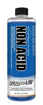 NANOSKIN NON ACID Non-Acid Wheel & Tire Cleaner is a professional-grade wheel and tire cleaner that forgoes caustic acids and instead relies on smart chemistry. Our "Xtreme Cling" foaming action is designed to cling to vertical surfaces and break down stubborn road residue on wheels & tires. Designed to clean clear coated, factory painted and chrome wheels, NON ACID enables you to save time and maximize profits by relying on one wheel cleaner for most applications. Like the name implies, NON ACID removes dirt and grime from tires as well. Now that 's what we call a great value!