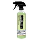 WATERLESS is a water-based, enviro-friendly blend of wetting agents, emulsifiers and protectants. It emulsifiers, lifts and remove bugs, dirt and light to medium surface contaminants. Not for excessively soiled, muddy or caked on dirt. Designed for all exterior surfaces. Works on all paint, metal, plastic, chrome and glass. Does not smear or streak. Perfect shine in seconds.