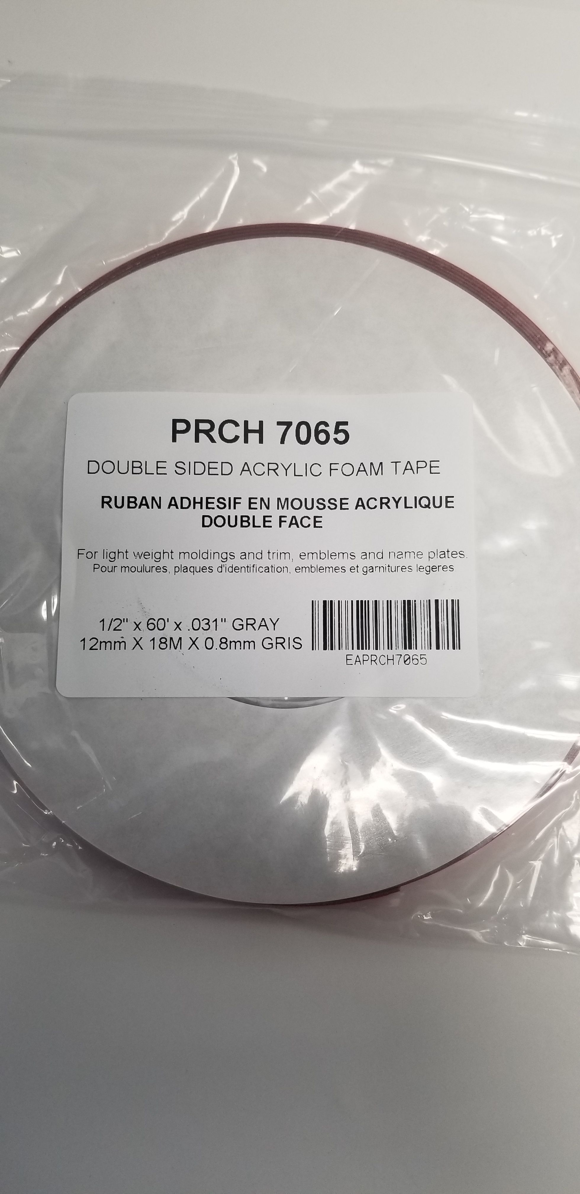 Ruban mousse acrylique gris à haute densité recouvert d'un adhésif sur les deux côtés. Permets de coller emblèmes, plaques d'identifications, moulures et garnitures légères aux finis bicouches. Non recommandé pour coller les moulures lourdes.
